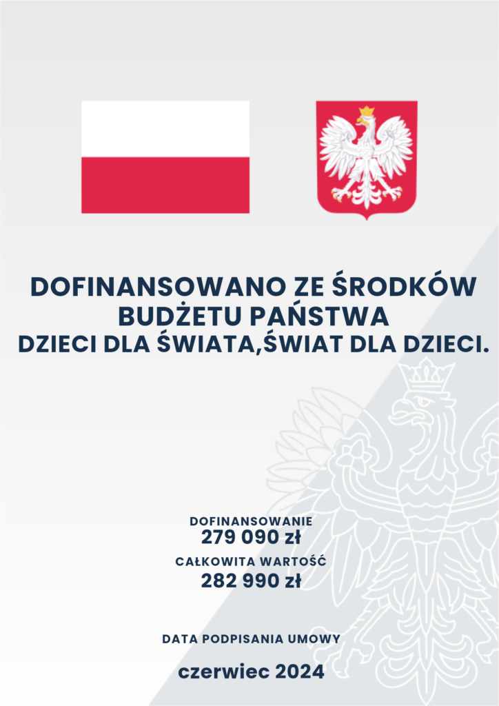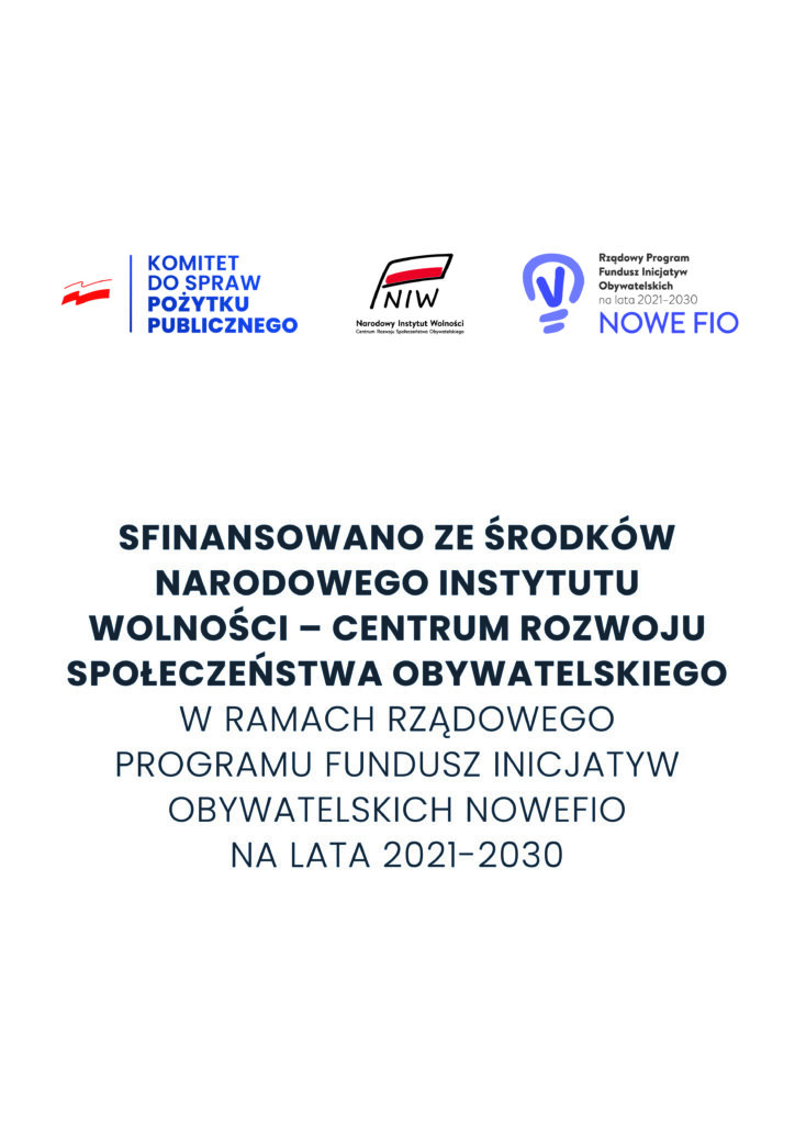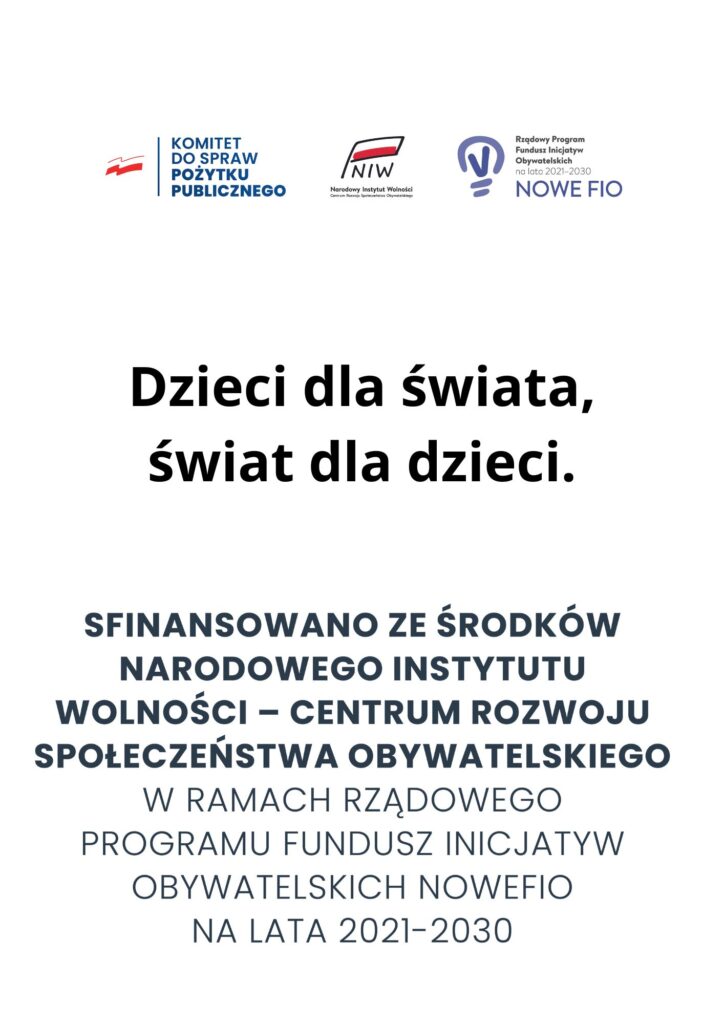 Fundacja Widzieć Marzenia realizuje zadanie publiczne pod tytułem „Dzieci dla świata, świat dla dzieci” sfinansowane ze środków Narodowego Instytutu Wolności – Centrum Rozwoju Społeczeństwa Obywatelskiego w ramach Rządowego Programu FUNDUSZ INICJATYW OBYWATELSKICH NOWEFIO na lata 2021-2030.