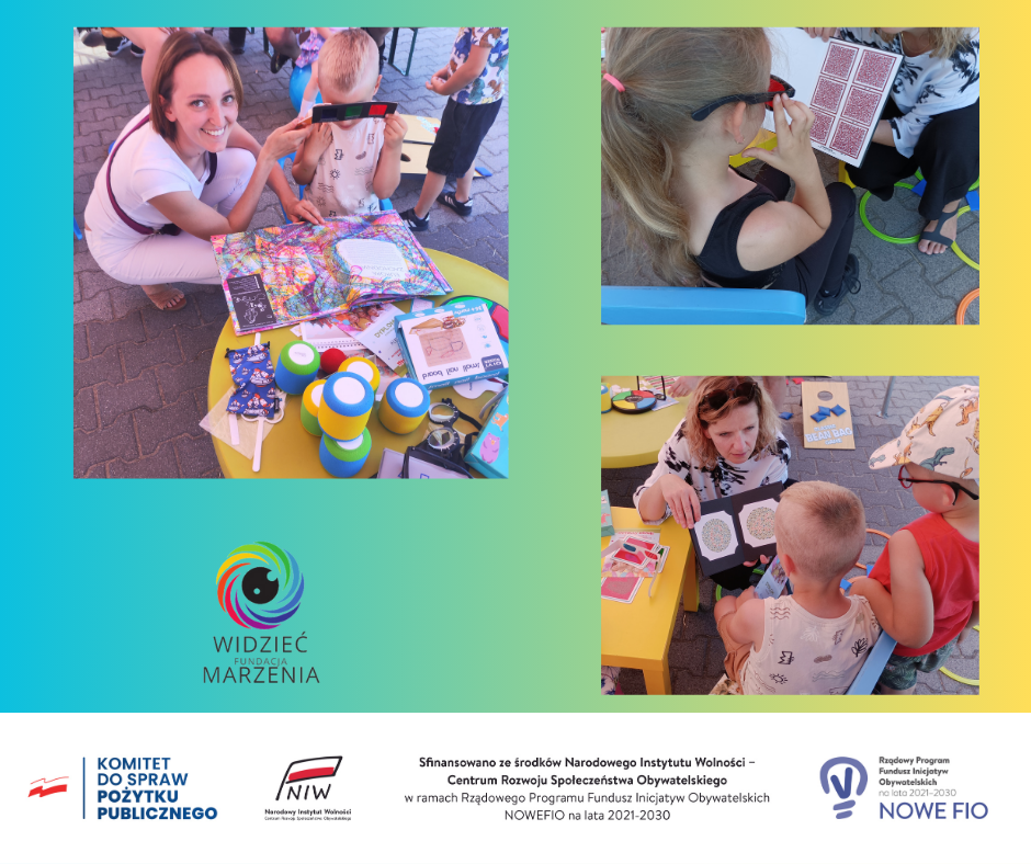 15 czerwca wspólnie z Inicjatywą Lokalną i UKS Warszowice zorganizowałyśmy festyn rodzinny. Podczas festynu odbyły się warsztaty dla dzieci i rodziców na których prezentowałyśmy w jaki sposób możemy rozwijać wzrok dzieci, a także udzielałyśmy konsultacji na temat zaburzeń wzroku.